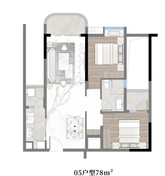 致景轩目前在售78㎡-110㎡二至三房户型,采用科学合理的布局设计,兼顾空间实用性与居住舒适度,适配刚需、改善等不同家庭的居住需求。每个户型均为精装交付,配置优质家电与装修材料,细节之处尽显匠心,让业主无需额外装修,轻松入住。78㎡两房两厅一卫户型:该户型布局方正,动静分区明确,客厅与餐厅相连,拓展了公共活动空间,采光通风效果极佳。主卧与次卧均朝南,保证充足的采光与视野,主卧配备观景飘窗,闲暇时可俯瞰周边景观,享受惬意时光。厨房采用U型布局,操作空间充足,搭配品牌厨房三件套,满足日常烹饪需求;卫生间干湿分离设计,保持空间整洁干燥,提升使用舒适度。该户型适合新婚夫妻或小型家庭居住,总价亲民,性价比极高。
