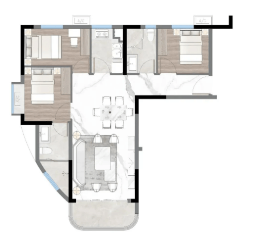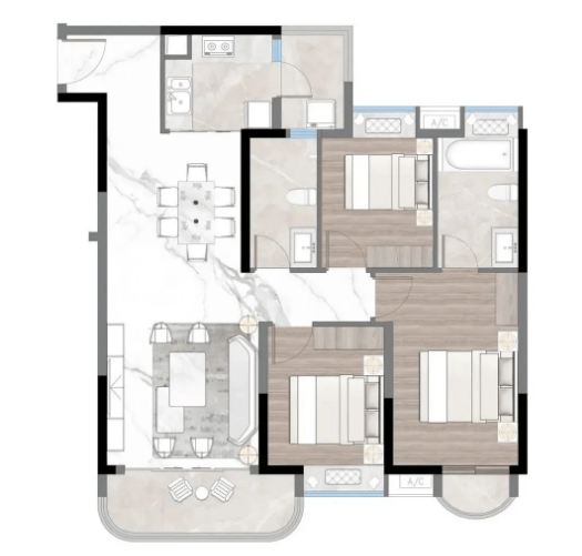 101㎡三房两厅两卫户型:作为改善型户型,该户型空间宽敞,布局合理,双卫生间设计避免了高峰期使用拥堵,提升了居住舒适度。客厅与餐厅南北通透,采光通风俱佳,连接超大观景阳台,北望珠江新城繁华景象与广州塔独特魅力,南拥海珠湿地公园自然美景,视野极佳。主卧配备独立卫生间与衣帽间,保障业主隐私,提升居住质感;两个次卧空间充足,可满足老人同住或孩子成长需求。部分户型配备中央空调,全屋温度均匀,提升居住体验。该户型适合追求高品质生活的改善型家庭。
